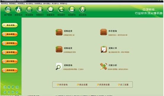 本软件包含商品采购、商品销售、库存管理、财务管理、统计报表、系统设置几个主要功能模块。