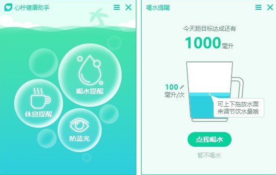如果你经常上班坐在电脑前,很容易会影响视力,而且久坐忘记喝水等情况对于腰椎和身体健康都不好,大家可以下载这款心柠健康助手提醒你每天注意自己。