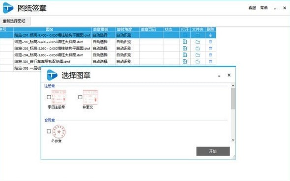 2、批量盖章:可以同时将注册章,出图章,发图章及其他章一次性批量盖章成功;