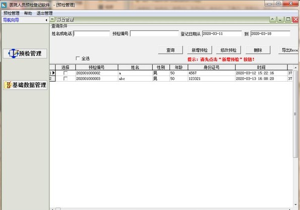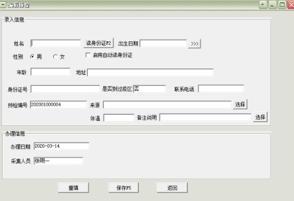 医院人员预检登记软件主要用于来医院的人员进行身份信息登记管理,采用刷身份证自动采集身份证里的信息,进行快速登记人员信息功能,更适于在疫情期间人员登记管理