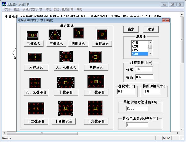 2~16桩承台的冲切、剪切、配筋计算。该软件需在Windows9x的支持下运行。屏幕的分辨率*好设置为1024×768或以上,*低要设置为800×600,若设置为640×400,可能有一部分窗口内容被截去。