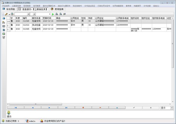 根据交通法的要求,对各项管理数据的分类,建立程序化、制度化、规范化的交通执法文书管理系统。该系统设计许多辅助录入,减少了录入工作量,提高了工作效率,降低了工作强度,为各市省交通管理提供了一个现代化的管理手段,保持了各种数据的完整性、及时性和正确性,完善了管理体系提高了管理水平。