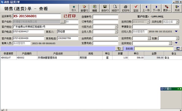 2、可以条形码开送货单,支持销售流程管理、仓存流程管理、应收账款管理、银行收支管理