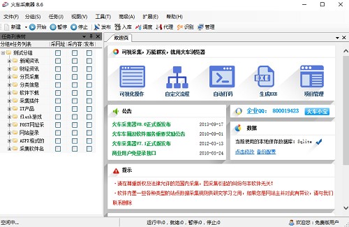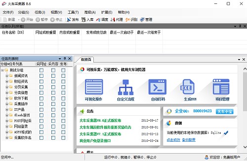 火车采集器帮助用户可以从网页中快速轻松地获取文本、图像、文件等资源的信息。 此外,通过火车收集器,用户还可以编辑过滤并将其发布到站点的背景中,或者将这些内容一起导出,从而为用户提供了极大的方便。火车采集器的界面简洁明了,操作也非常方便,设计非常人性化,功能也非常强大,占用空间也小,让用户不用担心电脑空间内存不足问题,是一款十分专业的网络数据挖掘软件。