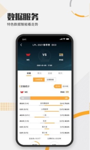 1、提供了赛事数据分析,还提供每个战队的战绩展示以及赛程安排;