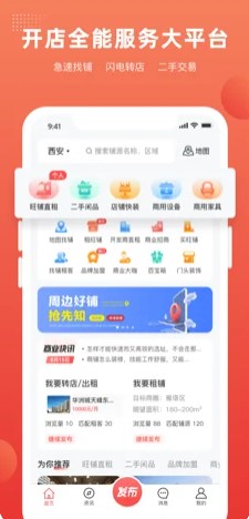 【一键发布】一键发布租转店铺、二手交易等需求,大数据精准速配。