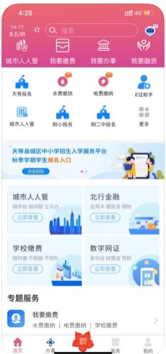 【办事服务】:通过一部手机实现“一网通办”,让数据多跑路,让市民少跑腿,真正实现方便市民办事“指尖上的便民工程”。