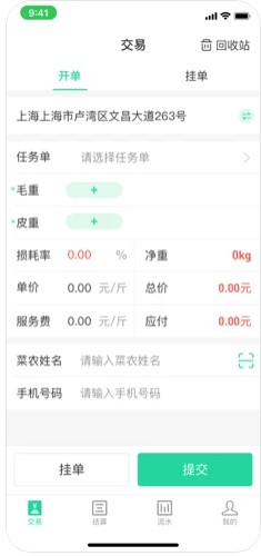 通过交易的开单页面进行交易;提供待开价、赊欠、结算三种交易模式。