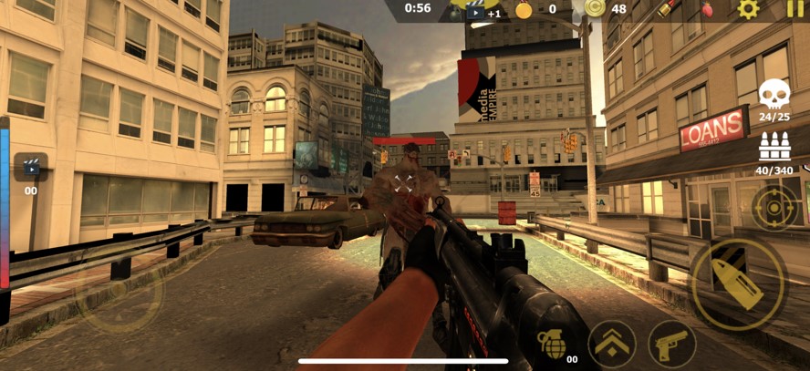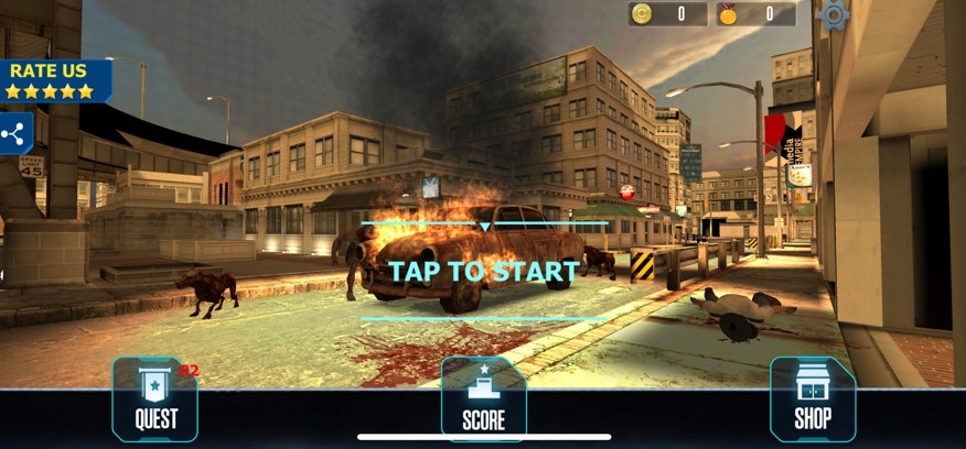 这是一款以末日僵尸为主题的射击游戏。你将扮演一个迷失在僵尸城市中的勇士,你将使用枪支来干掉所有僵尸,同时你还会需要面对超级厉害的僵尸,它比一般僵尸要难对付很多。另外,你还需要拯救城市中的其他平民免受僵尸的攻击。请好好享受游戏带给你的紧张感和射击快乐。
