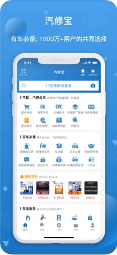 汽修宝是一款提供汽车相关数据查询与汽配电商交易服务的工具平台,专为汽车后市场各业务(汽配贸易、汽车维修、保险定损等)提供数据支撑,服务主要包括: