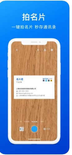 用名片全能王,手机拍照,就能自动扫描,精准识别名片上的信息,快速保存到手机通讯录。