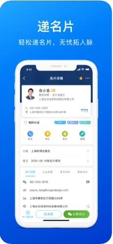 4、和客户聊天发图片,商务社交就用名片全能王,公私分明