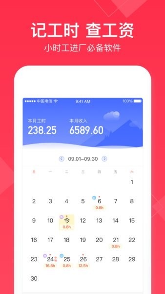 目前受打工人群喜爱的记录小时工、临时工、兼职工资的记加班产品!用户只需要输入小时工资、并选择工资时长;即可瞬间算出当日工资。并保存在手机里,以便核对,避免被黑心老板坑!5秒就能搞定。