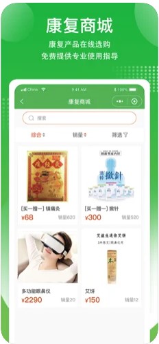 依托于康复行的技术生态,配合唯高集团的线上销售平台,实现康复行线上商城。