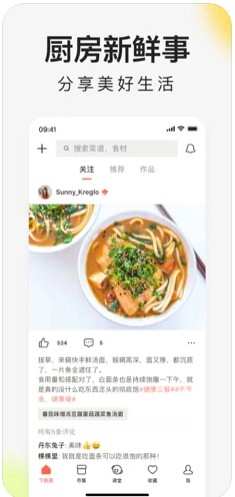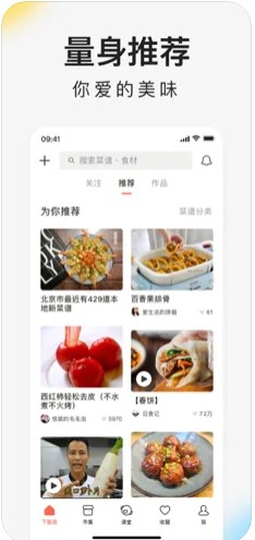 下厨房不再是简简单单的收录众多菜谱和众多菜单来分享给大家,而是以推荐和热门搜索的形式分享给每一位用户,例如在春天午饭后的2点时分可以考虑用草莓、菠萝制作一个沙拉来充午茶。在这个季节大家都在做什么样的菜,看完了“舌尖上的中国之时令篇”你会发现一年四季的中国有一年四季的美食,近期流行的菜谱也许可以给你答案;找到一个充满惊喜的妙方,别着急加入“购买清单”奔往菜场,不妨先看看“喜欢这道菜的也喜欢”,很可能会让你惊喜连连……