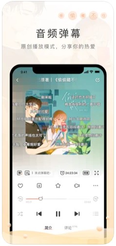 声音播放,原创播放模式,声音+多图+弹幕的多种形式;
