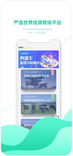 全民养牛应用程序让所有投资者轻松投资养牛。 全民养牛应用程序也是可以养牛的应用程序哦。 用户通过全民养牛可以很容易地看到澳大利亚的牛。还在等什么,赶紧下载使用吧。
