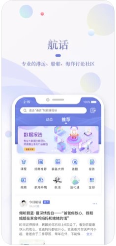 航话app是一款让航运、海事、船舶、海洋行业用户可以第一时间获取资讯、信息,如最新订单,行业动态等,获取行业知识,比如船舶在建造、营运过程中遇到的问题,还可以分享工作、生活相关心得经验的平台。用户可以在圈子中分享自己的点滴故事,在社交中结识更多类似行业的大咖、同行,获取更多的信息,销售机会,工作机遇,通过圈子——让你了解关于行业相关的一切。