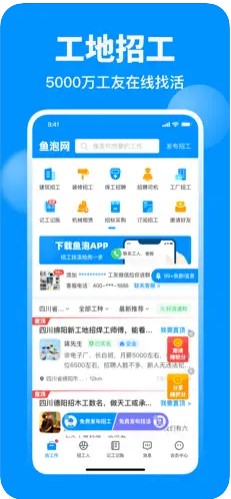 鱼泡网、建筑招聘、建筑人才、工地招工、工地招人、找施工队等工程信息,方便建筑工人找活、找项目,为建筑劳务公司寻找优秀的建筑工人、建筑人才、建筑班组、施工队。