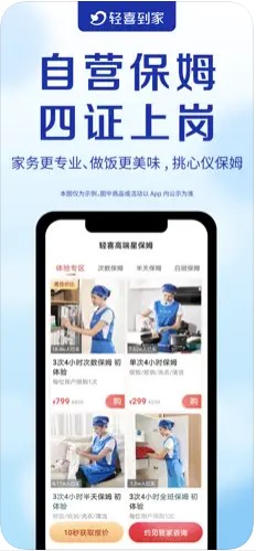 轻喜到家是由深圳市轻喜到家科技有限公司推出的家庭生活服务软件,涵盖高端保洁、直营保姆、家居养护、母婴护理、育婴早教等多种服务,全直营管理+高标准培训,通过自研平台实现全流程5级管控,通过智能清单管理,让专业服务看得见。