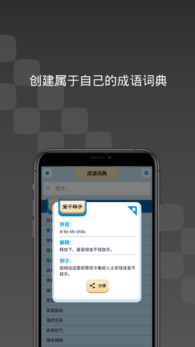 这是一个十分好用的手机找成语游戏,游戏中你要向上,向下,向左,向右或对角线滑动以标记它们,磨练您的成语技能,游戏内结合超过1000个成语字汇。是学习成语的好帮手。
