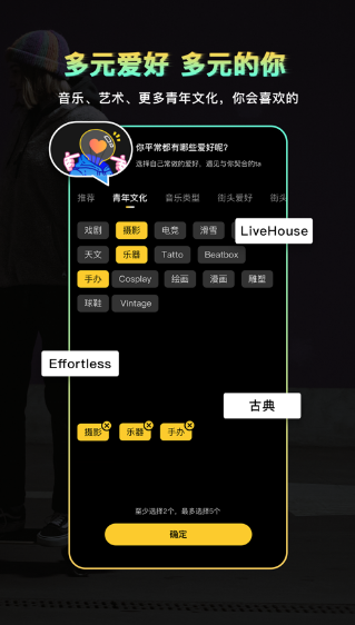 这是一个专门为年轻人建立的当代文化兴趣和友谊社区,这是一群充满有热爱的、纯粹的快乐者聚集地,我们有独特的个性,喜欢交朋友,演奏一些音乐,看过不少小众佳片,并且有着高级的审美。