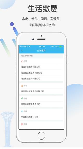 目前,“椰城市民云”可以在线支付水、电、气、缆、固网和宽带费用。其中,水费接入海口开元水务、海口威立雅水务有限公司,电费接入海南电网有限公司,燃气费接入海南民生管道燃气有限公司,电缆费接入中国有线海南分公司,目前固定线路和宽带已接入中国电信海南分公司。