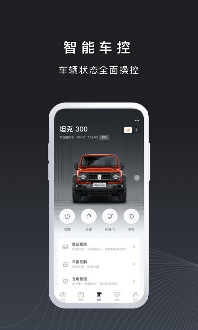 【智能的车控】坦克车况全掌控,绑定爱车,随时关注车辆健康状况,体验互联服务或智能控车功能;