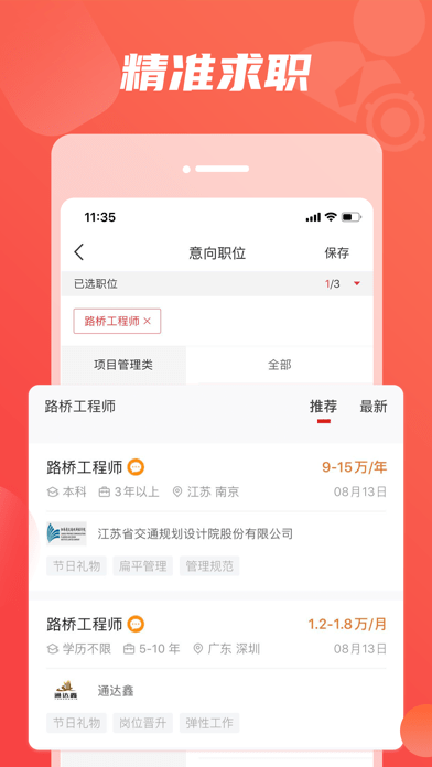 3、专业行业细分,精准职位推荐,让你快速找到适合的好工作。
