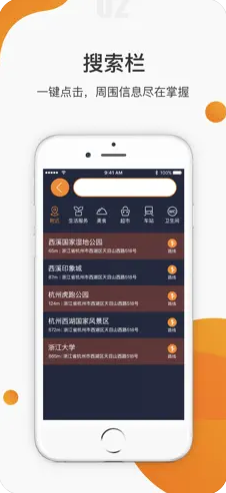 便捷的搜索栏,提供目的地及周围信息的快捷搜索;