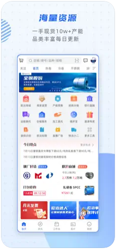 欧冶是国内领先的钢铁交易电商平台,汇集宝武钢铁、首钢、重钢、唐钢、本钢等国内知名钢厂的一手资源。品类齐全,热卷、冷卷、涂镀、硅钢、钢筋、不锈钢等十几个品类应有尽有。同时,配套交易的钢材加工、物流配送、金融服务也可以在欧冶平台轻松获取。