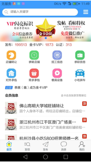 沙县小吃网是一款信息共享的软件,该应用的功能包括了店铺转让、招工信息、小吃拼车等服务,不出门即可享受生活的便利,这里帮助用户查阅想要的信息,关键词即可搜索到服务,总能为用户查找到精准信息,最新发布实时提醒,能够浏览到全部共享需求,立即就能与发布者进行沟通和洽谈,让合作变得更简单;进入招工网,立即查阅到更多转让的门店,查看到详细的转让详情描述和对应的门店信息,这样就为用户带来了更多优质的门店转让内容,支持收藏功能,便于对比选择门店,支持评论和电话沟通,轻松合作,找到好门店。