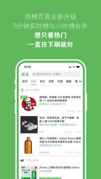 逛丢实时同步全网折扣为您优选各大折扣网站平台的最新优惠信息,无需注册,没有任何的推送,实时同步全网折扣,是您电商购物省钱的首选app!