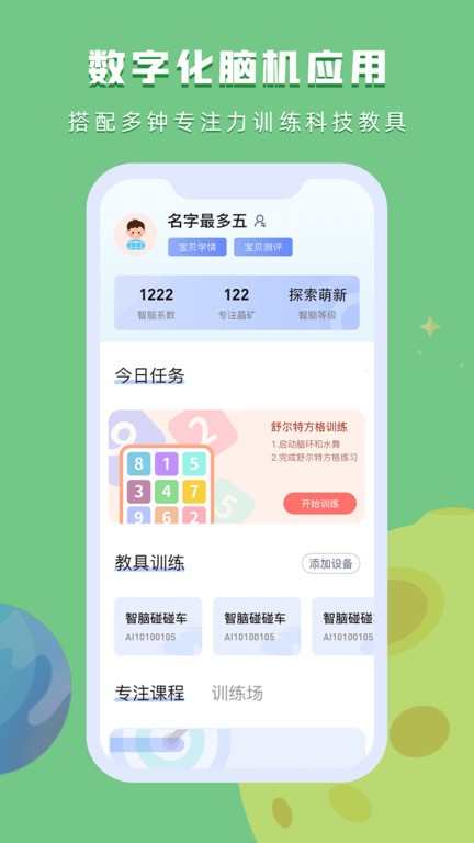 水母星球app可以通过各种训练来达到锻炼和开发脑力的目的,教学方式多种多样,有详细的课程训练,还有休闲的小游戏,支持与教具和脑环绑定以后使用,可以查看详细的训练报告。