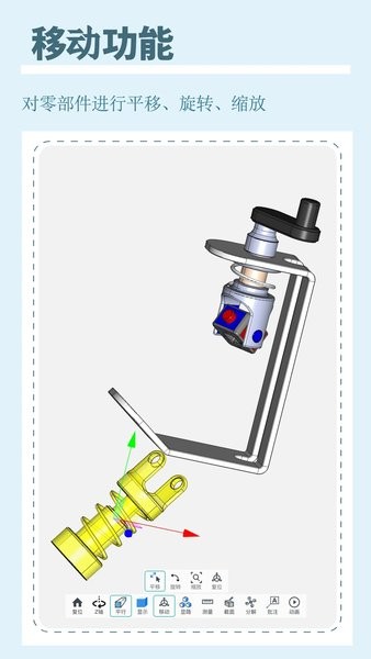无需安装cad软件,在手机上即可快捷浏览jt、ug、catia、pro/e等3d模型,支持3d模型的装配结构查看、精准测量、零件操控、模型分解等可视化功能。