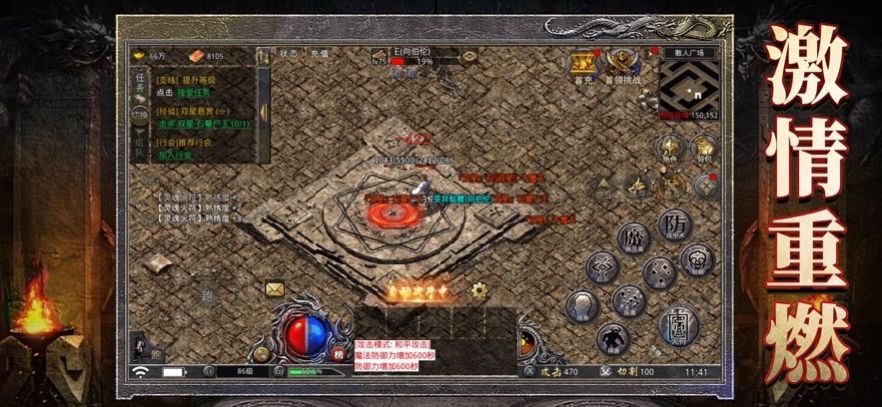 2、开局有免费麻痹戒指,完美还原当年的热血传奇游戏。