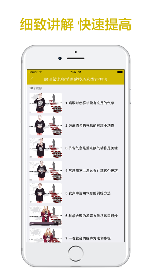 4、细致讲解,跟音频练习,帮助你解决高音上不去、低音下不来、气息不够用、唱歌容易累。