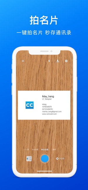 再也不用担心把客户名片丢在任何地方,也不用费心保存纸质名片,手机随时扫描保存。