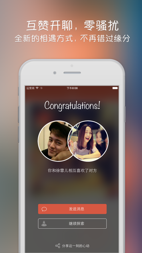 左滑无感、右滑喜欢,互相喜欢即配对聊天