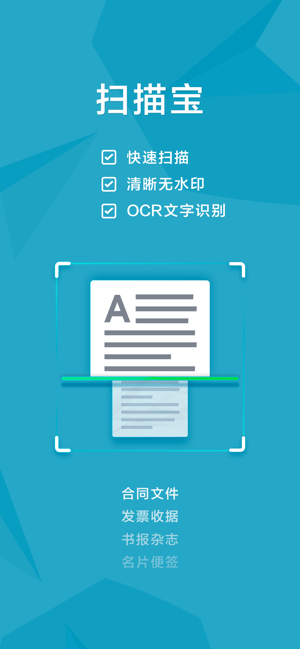 扫描宝是一款iOS系统上的扫描软件,主要是自己不用拍照就能够通过软件扫描将合同文件、书刊、发票收据、名片等纸质文件装进手机,然后在世界各地都可以打印出来进行使用,感兴趣的小伙伴欢迎点击下载下来吧。