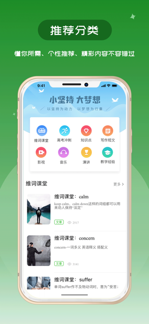 维词是一款帮助高中自主学习的英语提升成绩的神器,这款app可以帮助英语小白变成英语学霸级别的人物哦!结合了高中的教材,精选的高考考试的知识点可以阅读学习,这是全国千万学子的共同选择,赶快来下载体验吧。