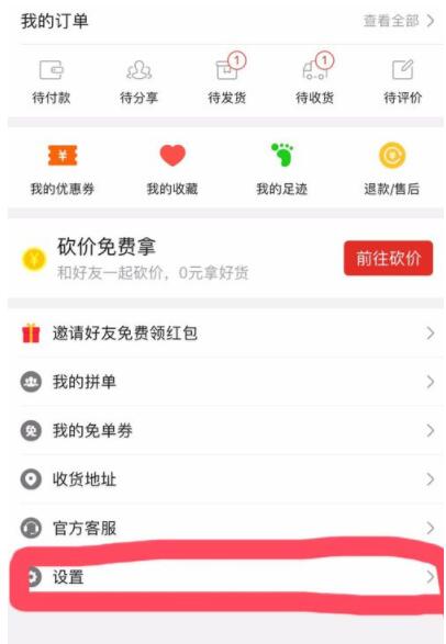 1.首先我们需要打开拼多多软件,点击下方的个人中心,在个人页面中找到设置点击一下