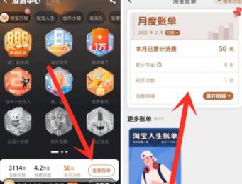 淘宝如何查询月账单?淘宝是一款为用户们带来了超多精彩功能,让用户们不仅是可以在线购物还可以在这里看见很多有趣的短视频,和各种小游戏,在这里用户们的购买使用都是有记录的,用户们想要了解自己的总账单还有月账单都是可以在软件中的淘宝人生中进行查看的,在这里还可以看见用户们获得的各种成就,为用户们提供各种可以进行查询的内容选择,接下来要为各位小伙伴们带来的内容就是在软件中进行月账单的查询方法介绍,有不知道具体的操作步骤的小伙伴们快来学习一下吧。