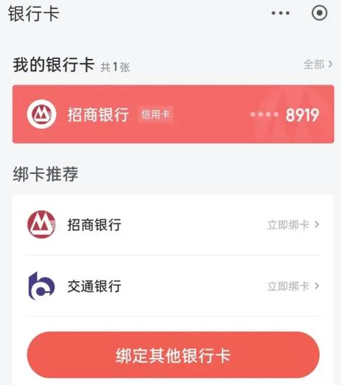 在我的钱包界面,点击银行卡。