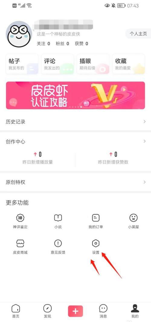 先打开【皮皮虾】的APP,点击更多功能下的【设置】选项