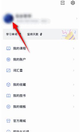 1、首先打开手机上的百词斩,点击左上角的头像。