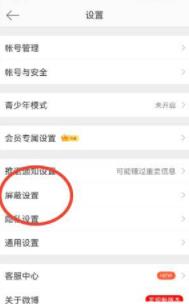 1、在新浪微博【我】的页面内,轻点页面上方的【设置】图标按钮,接着轻点【屏蔽设置】选项按钮。