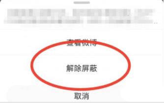3、在展开的下拉列表内,点击【解除屏蔽】选项按钮,即可成功将该微博取消屏蔽。