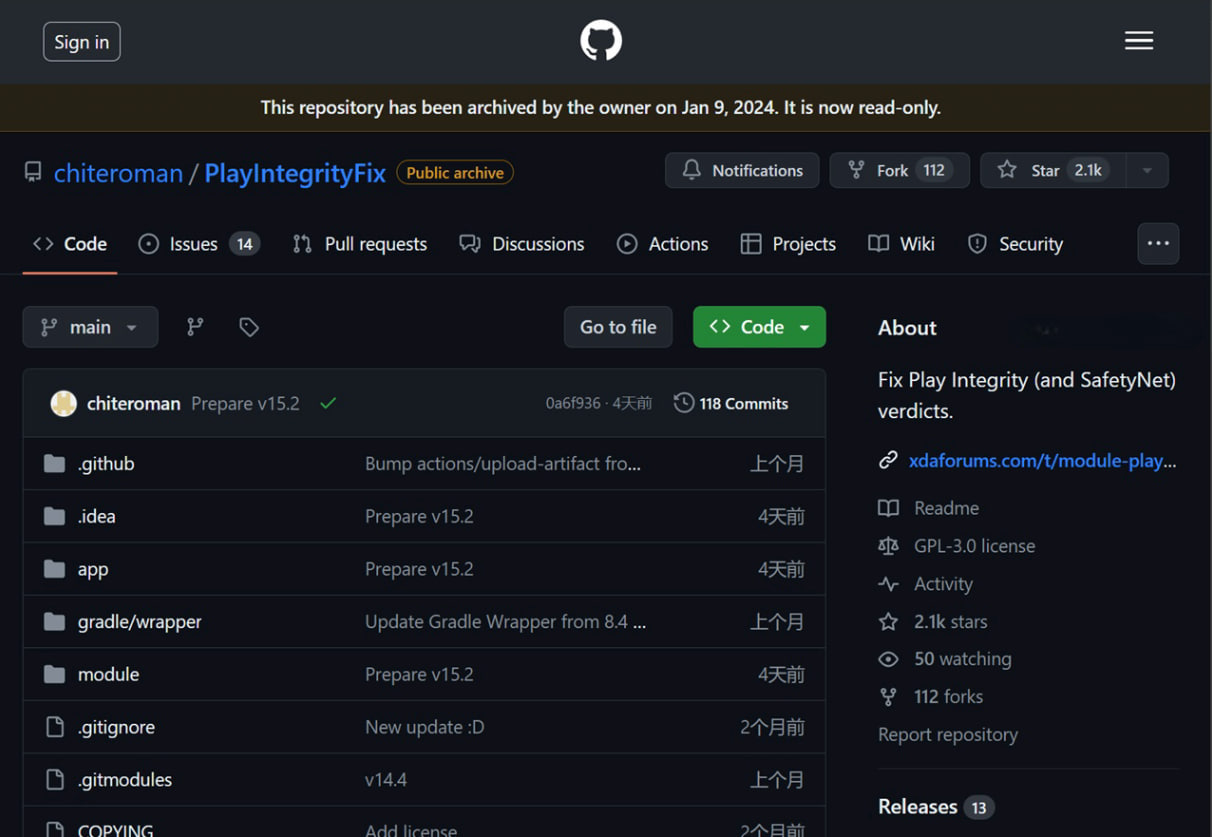 现在 KernelSU 和 Zygisk Next 已经停止维护,加之社区目前出现的争议,所以 PIF 作者也决定停止维护了。