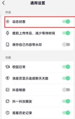 4.最后在通用设置的页面中点击开启【动态封面】把后面的按钮打开成如图示的样子即可;